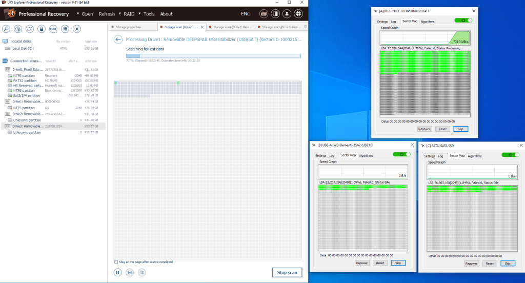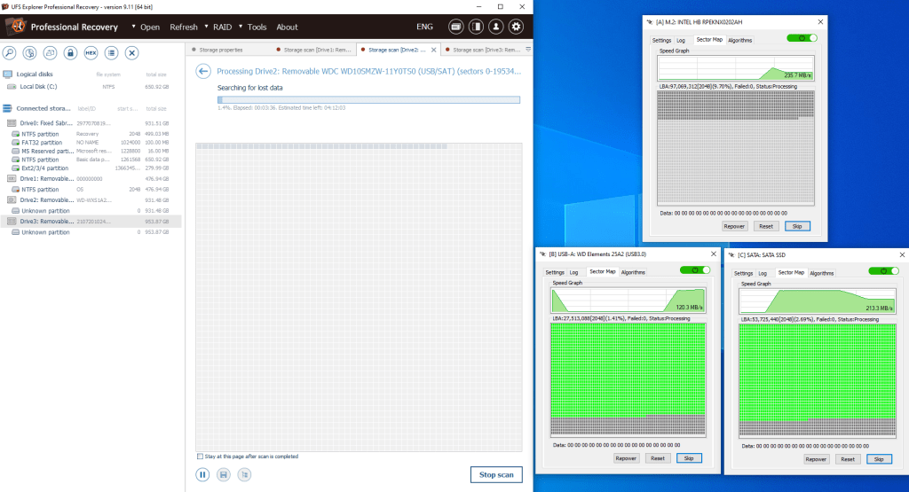 NVMe SSD, USB hard drive and a SATA SSD Imaging with UFS Explorer via USB Stabilizer 10Gb