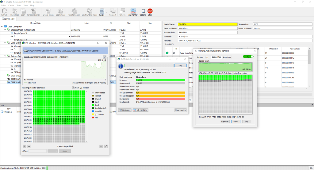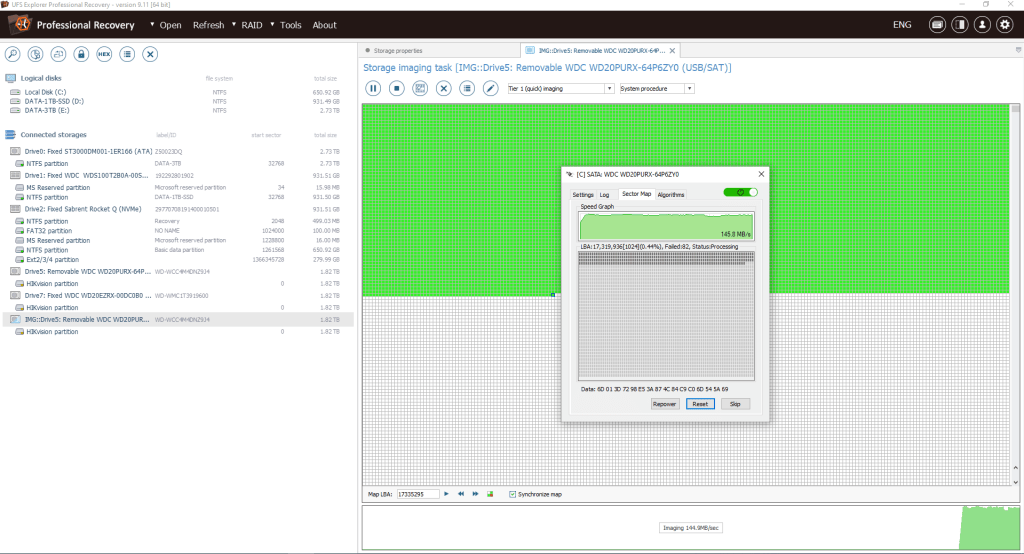 Imaging a Damage Western Digital SATA Hard Drive with R-Studio and UFS Explorer