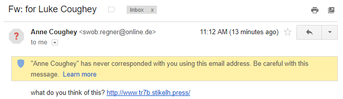 - Does the subject make sense? Why would a family member send a direct E-Mail with a subject suggesting that it is for me?