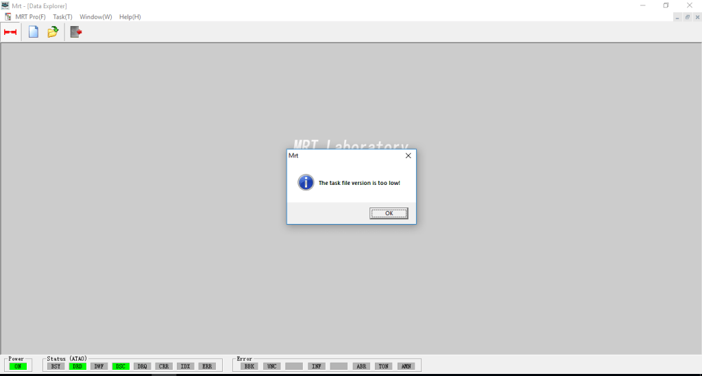 When a user chooses to open a task in DE, they are prompted with the error message, “The task file version is too low!” This is particularly frustrating for a user working on a project with a drive that is unstable and may not image the same sectors a second time, assuming that the patient drive is even still working.