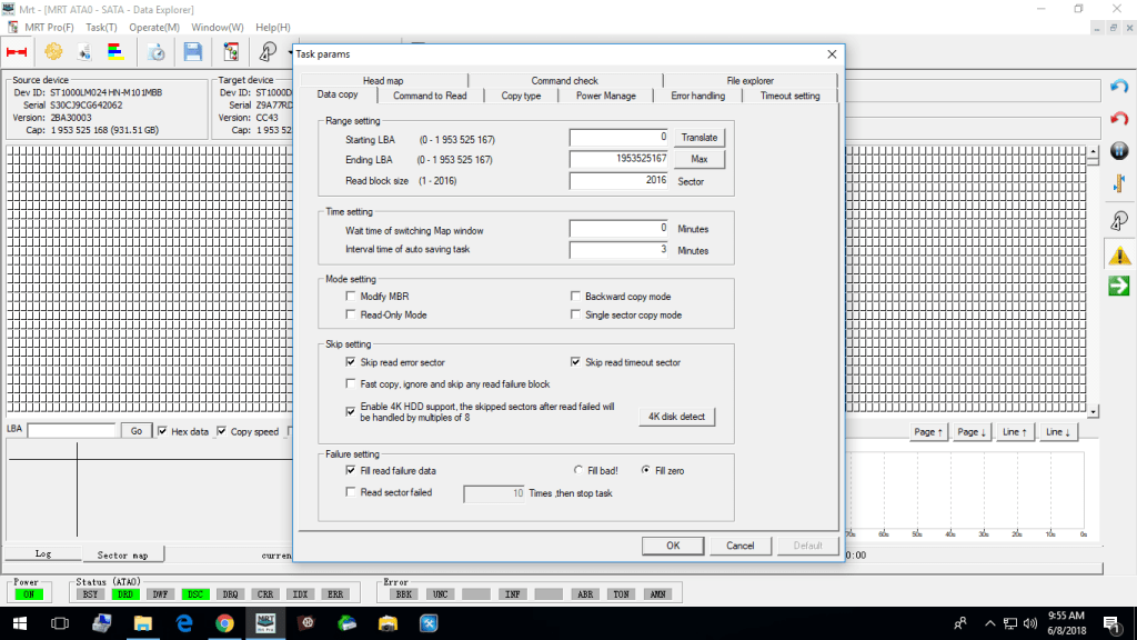 Step 6 – Re-configure the task parameters to your preferred settings and carry on with your data recovery project.