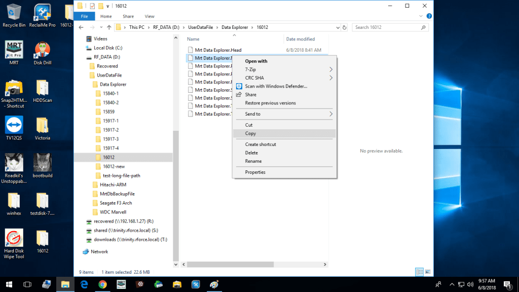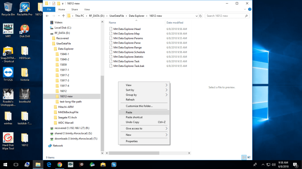 Step 3 – Copy the file, “Mrt Data Explorer.Map” file from the old task folder to the newly created task folder, allowing Windows to overwrite the file.